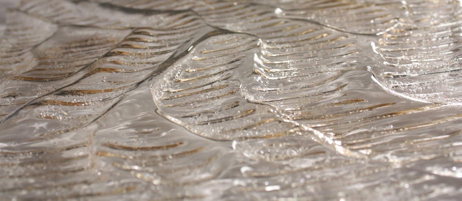 The goal was to get the ideal hole size and density. When the light is in front you just see the crinkly gray surface, but when the light is behind you see all the holes light up like little stars. You don't see the surface anymore just the holes and the dark contrast of the opaque. It is aluminum foil crinkled glued onto acrylic sheets. Then it was painted with white acrylic paint mixed with ink, and sanded to create the holes.